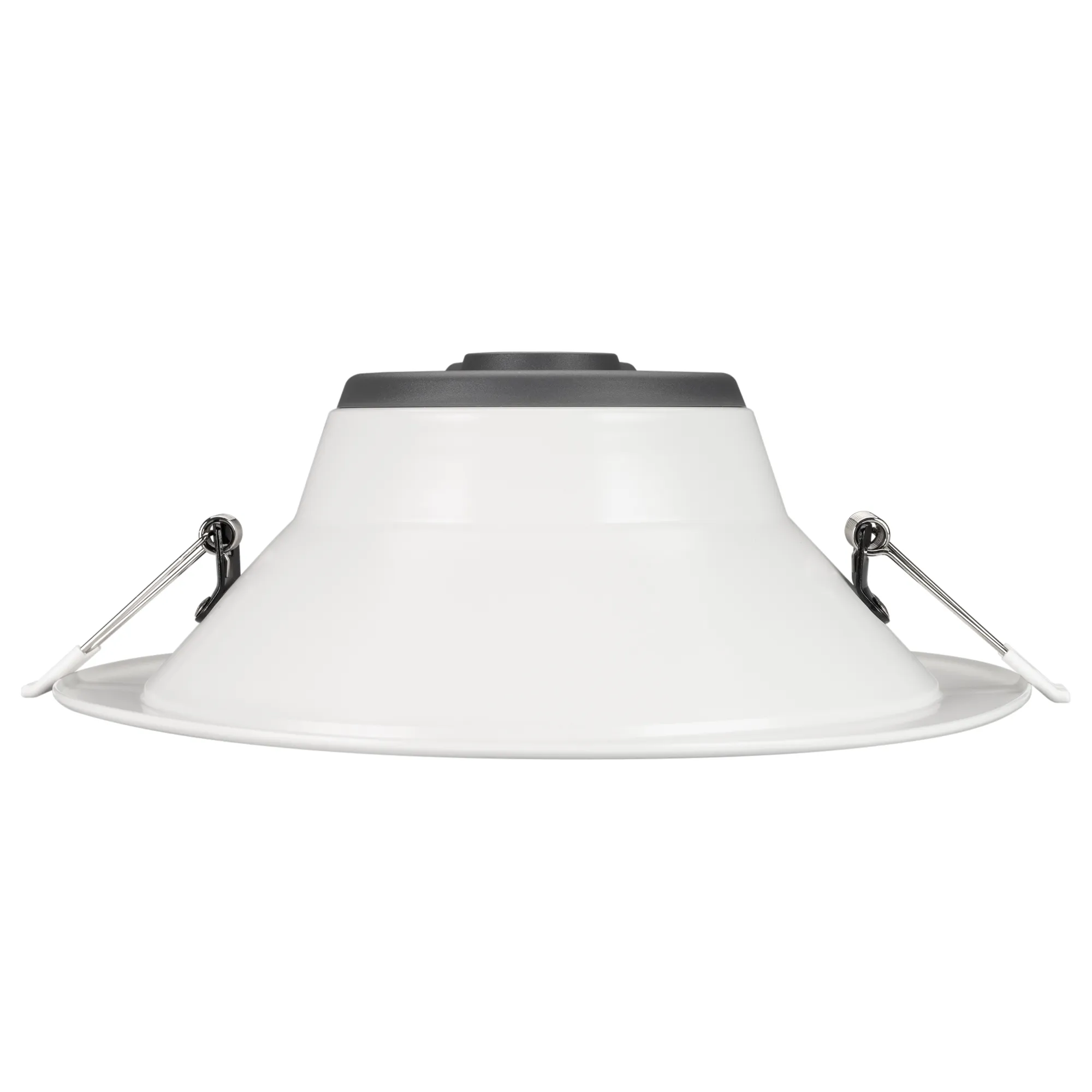 Светильник даунлайт с изменяемой цветовой температурой и переключателем на корпусе. Мощность 35 Вт, св. поток 4038-4230 лм, 106 лм/Вт, белый 6000К, или дневной 4000К, или теплый 3000К (выбор цвета свечения при установке, фиксированный), CRI>80, угол 80°, напряжение питания 230 В. Белый круглый корпус из алюминия, степень защиты IP20. Размер: диаметр 232 мм, высота 83 мм. Монтаж встраиваемый, установочное отверстие: диаметр 195-210 мм. Драйвер 26,5-44,5 В, 900 мА, пульсация <0,7%.