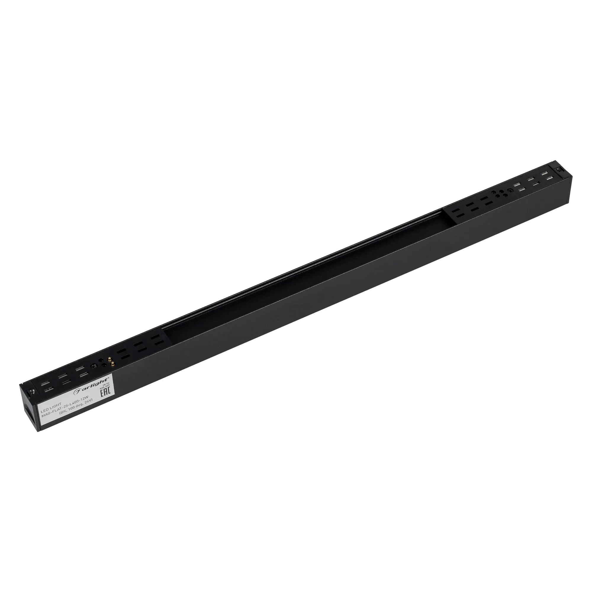 Светильник для магнитных треков шириной 25 мм, 12 Вт. Цвет свечения ДНЕВНОЙ 4000K, световой поток 780лм, угол 100°, CRI>90. Корпус прямоугольный, металл, цвет черный, IP20. Размеры LxWxH 404x20x25 мм. Входное напряжение DC24V, мощность 12 Вт. Драйвер AC230V/DC24V поставляется отдельно. Диммируется только с 026407, 027633.
