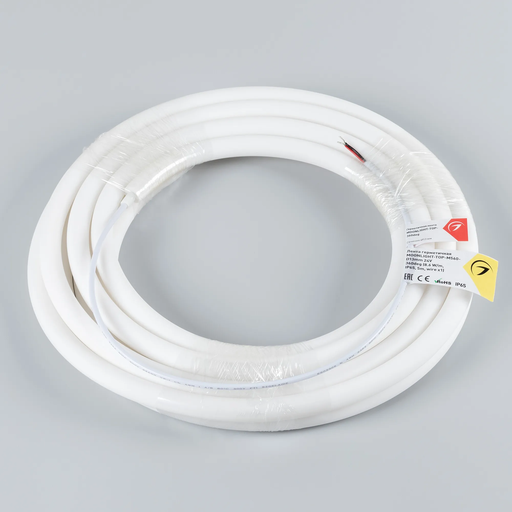 В магазине Arled Market Вы можете купить "Лента светодиодная герметичная MOONLIGHT-TOP-M560-D13mm 24V Day4000 360deg (8.6 W/m, IP65, 5m, wire x1) (Arlight, Вывод прямой, 3 года)"