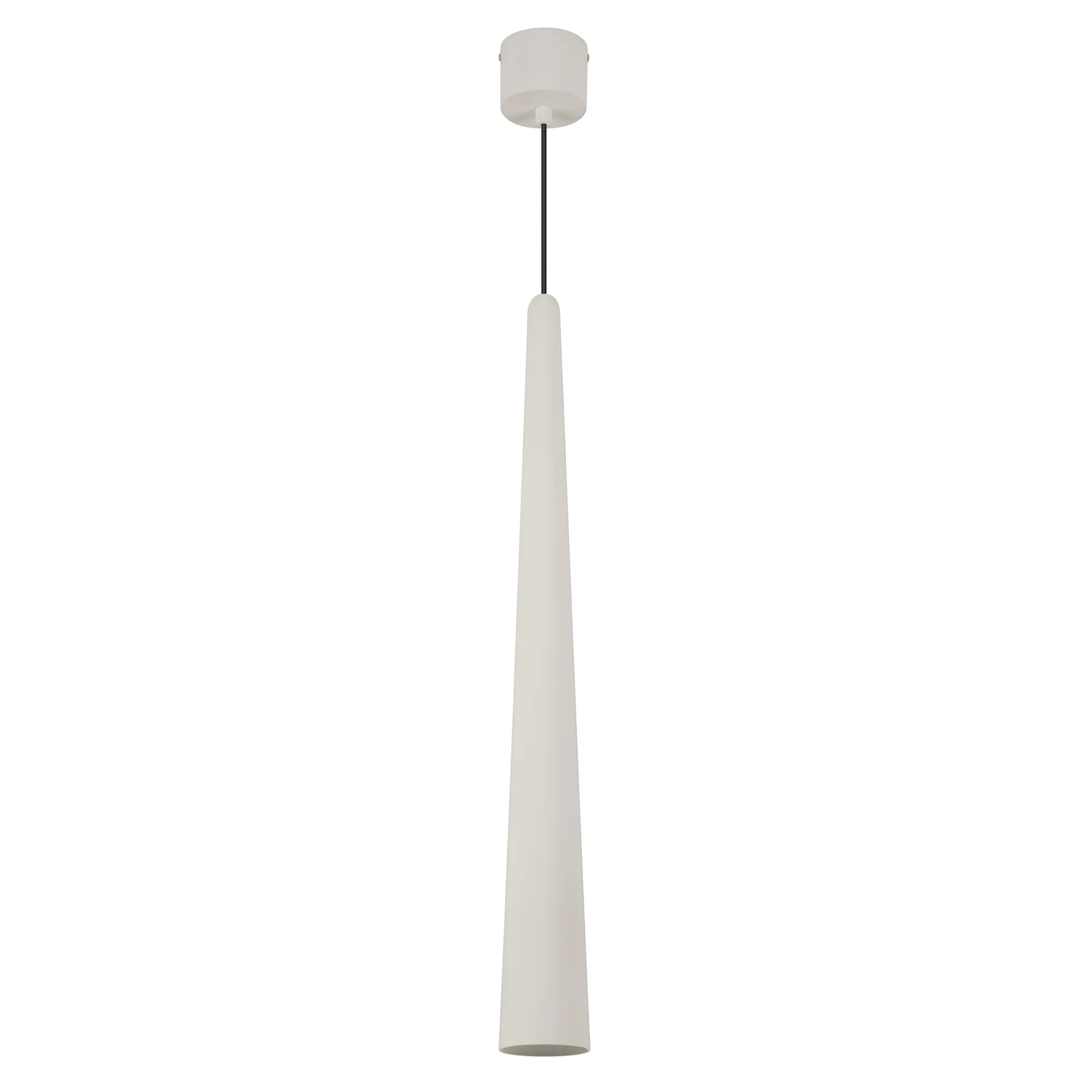 Подвесной светильник. Мощность 5 Вт, св. поток 400 лм, 70 лм/Вт, теплый 2700 K, CRI>92, угол 36°, напряжение питания 230 В. Светло-серый конусообразный вытянутый корпус из алюминия, линза из PMMA, степень защиты IP20. Размер: диаметр 76 мм, высота 670 мм. Монтаж подвесной, длина подвеса 2000 мм, регулируемая. В комплекте 2 вида чаш. Габариты встраиваемой чаши: Ø 80x41 мм. Габариты накладной чаши Ø80x60 мм. Драйвер 2,8-12В, 500 мА, пульсация <1%.