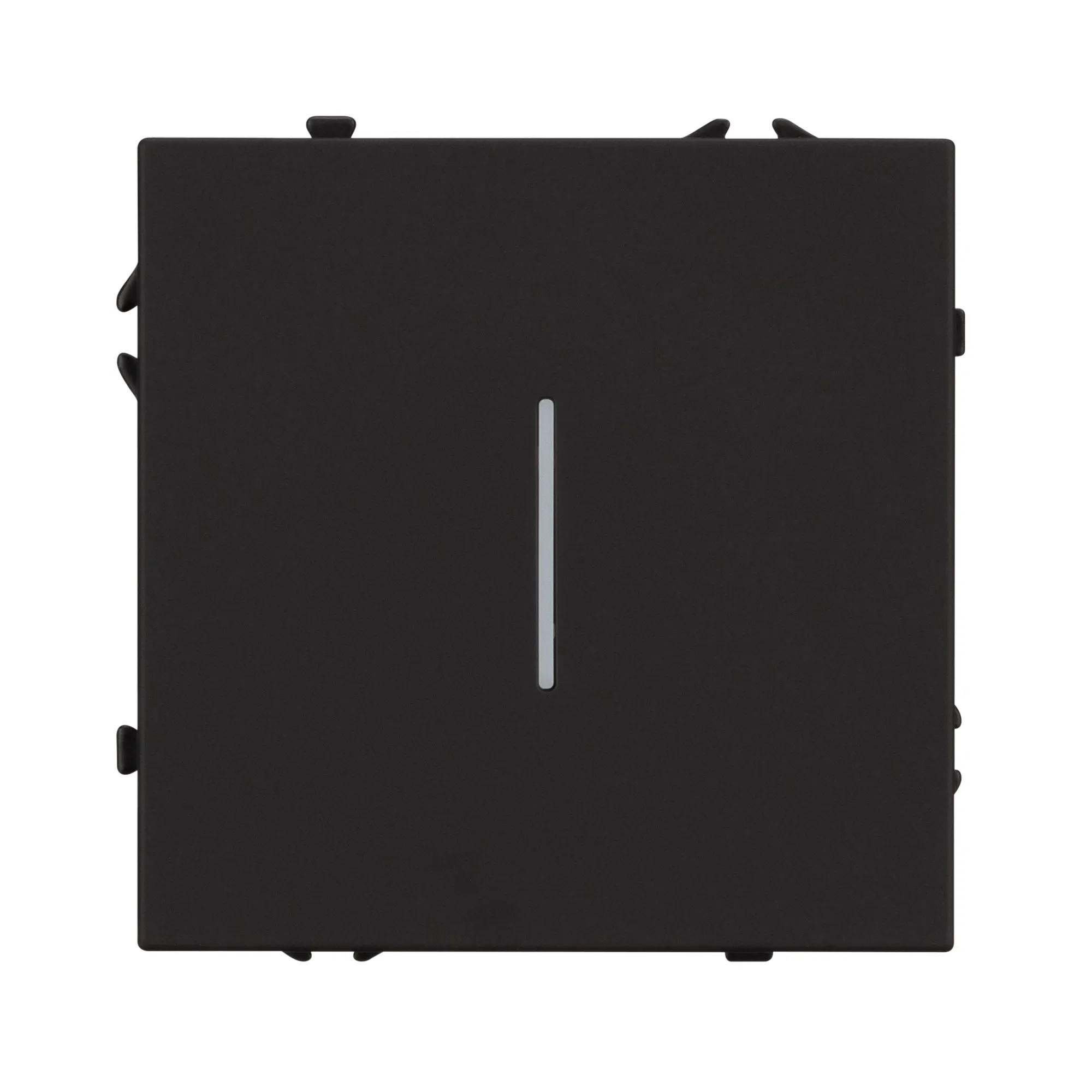 Механизм выключателя света клавишный на 1 пост 1 клавиша (непроходной). Цвет - черный, с Soft-Touch покрытием. Клавиша имеют активную LED подсветку - cинего свечения. Без фронтальной рамки. Уровень пылевлагозащиты IP20. Выключатель устанавливается в стандартный круглый подрозетник круглого сечения диаметром 60мм.