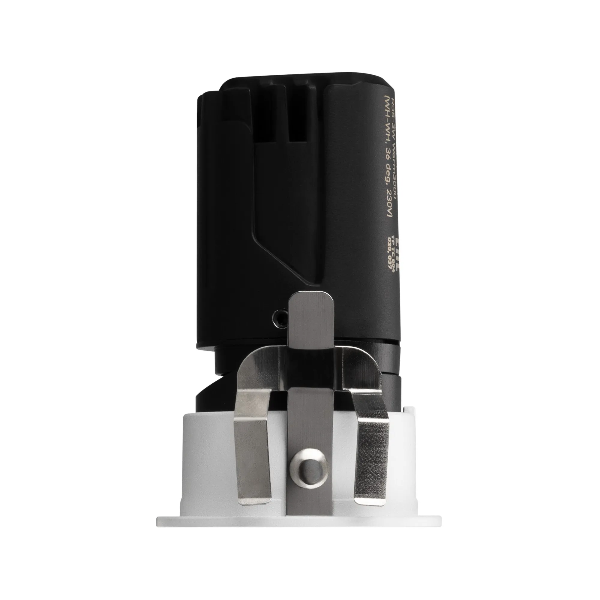 Встраиваемый светильник даунлайт. Мощность 3 Вт, св. поток 170 лм, 56 лм/Вт, теплый 3000 K, CRI>92, угол 36°, напряжение питания 230 В. Белый круглый корпус из алюминия, ,белый матовый отражатель, степень защиты IP20 . Размер: диаметр 42 мм, высота 65 мм. Монтаж встраиваемый, установочное отверстие: диаметр 35 мм. Драйвер, 30-40 В, 70 мА, пульсация <1%.